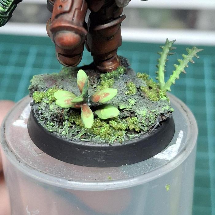 Next glue down the plastic plants, for some I use milliput since super glue isn't enough, once dry I paint it brown.